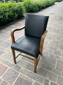 Sedia elegante proveniente dall'America in legno e la seduta rivestita in cuoio.